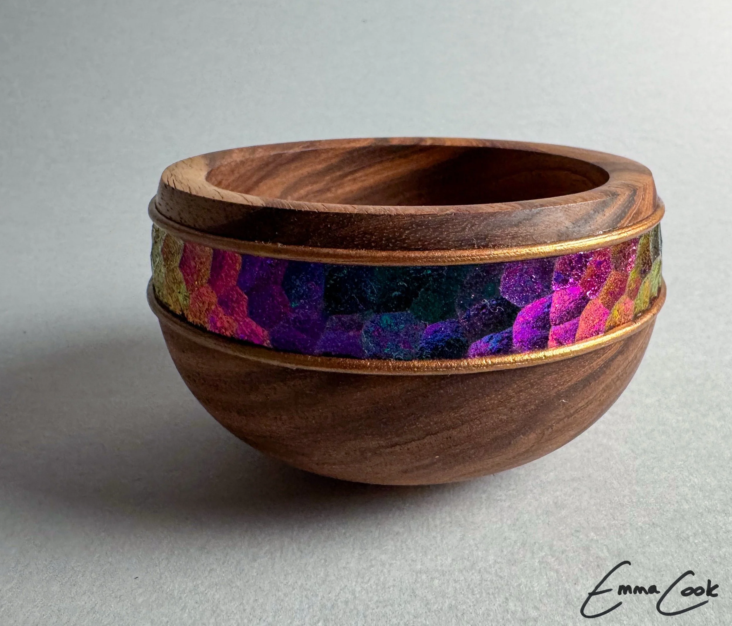 SPECIAL DATE! Our January demo will be on Saturday, January 24, from 1:00-4:00 pm at the Williamson Road Masonic Lodge with Emma Cook (aka the Tiny Turner). Emma is one of the youngest members of the Register of Professional Turners and one of the few female professional turners in the UK. Emma will be demonstrating her chameleon bowl (see picture) using her line of chameleon powder. Emma has many great videos and photos of her work online in forums like YouTube and Instagram.